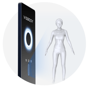 Através da câmera com sensor de profundidade e algoritmos exclusivamente desenvolvidos, o sistema do VISBODY é capaz de realizar rapidamente 13 medições de circunferência com precisão milimétrica. As medições incluem a circunferência do pescoço, dos braços esquerdo e direito, do peito, da cintura alta e média, do quadril, das coxas esquerda e direita (incluindo as circunferências mínimas), bem como das panturrilhas esquerda e direita. |